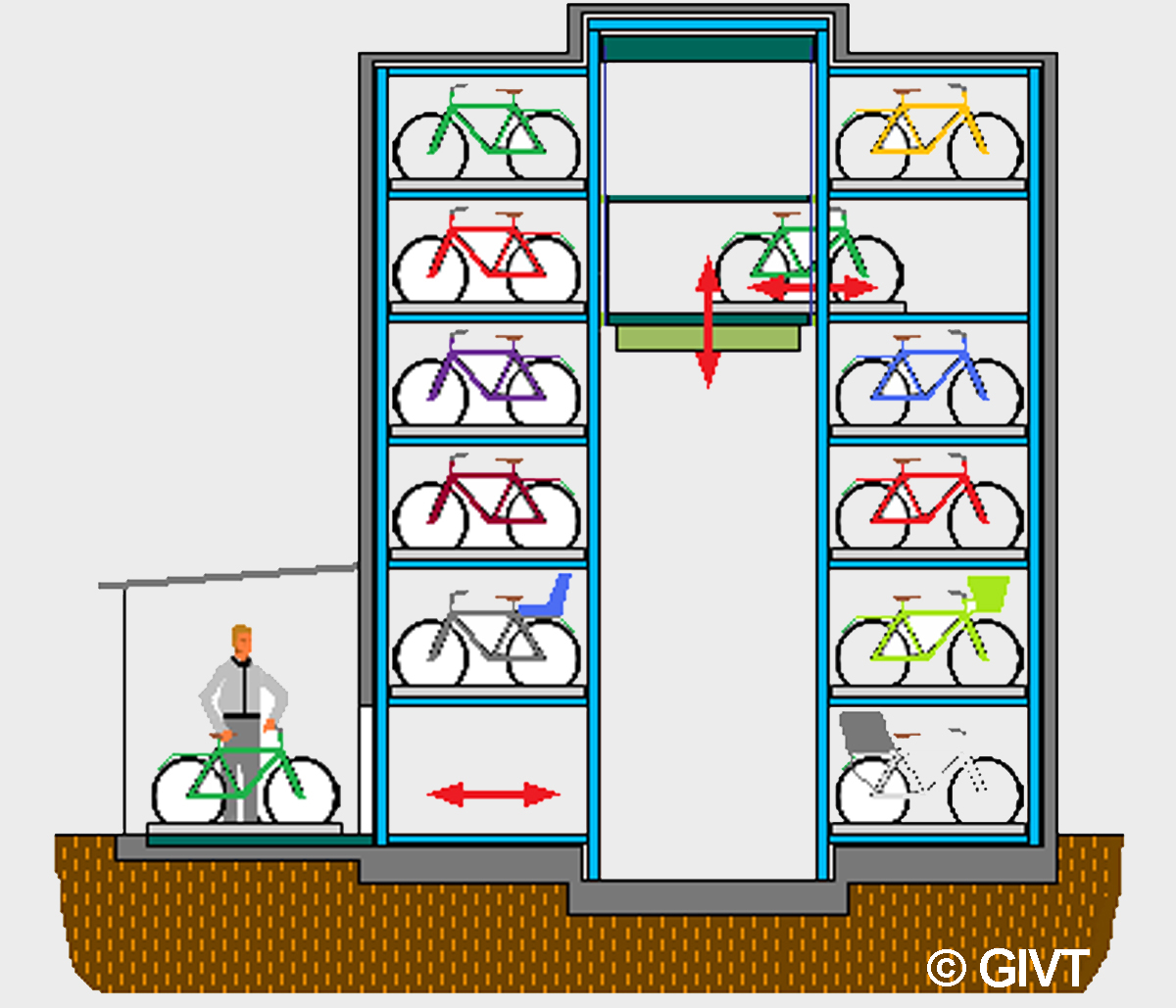 Westfälische Bauindustrie GmbH, Münster(2010) Beratung und Abnahme der ParksystemtechnikAutomatisches Fahrradparksystem Stubengasse, Münster 120 Stellplätze